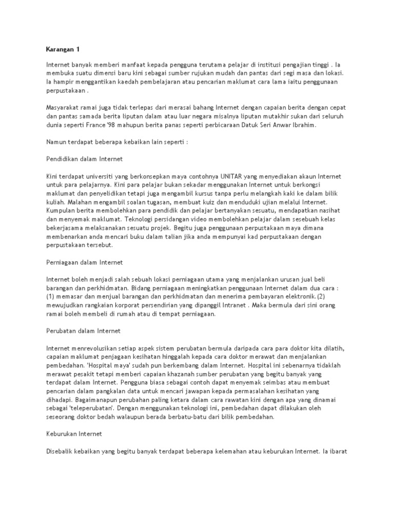 Karangan syarahan keburukan dan kebaikan internet.